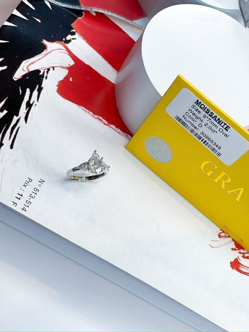 Ao centro, uma moissanite lemon, um tom mais amarelado, de 2,0 quilates em formato de gota (pear cut) captura a luz com intensidade e sofisticação. Esse corte, que une a leveza da gota à elegância da lapidação brilhante, realça a delicadeza da peça com um brilho envolvente. A moissanite é uma gema ética e sustentável, ideal para quem deseja uma alternativa consciente ao diamante, sem abrir mão do luxo.