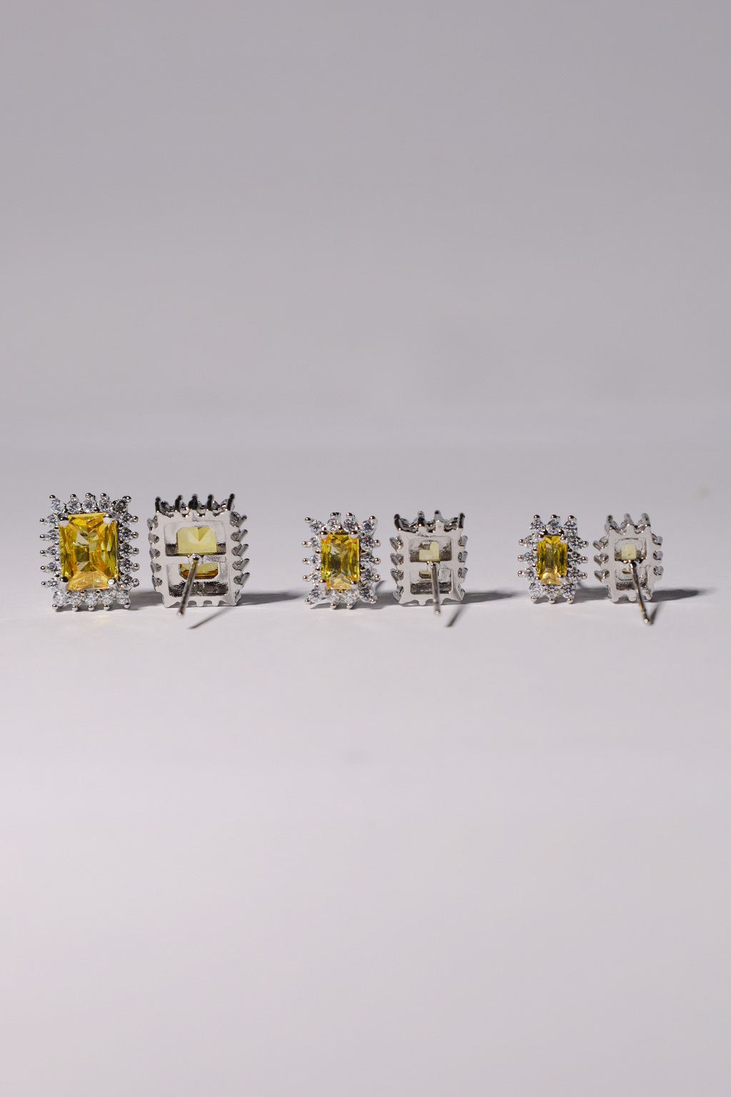 O Trio Retângulos Itália é composto por três pares de brincos retangulares, cada um com microcravações delicadas de zircônias ao redor, que realçam o brilho e conferem um acabamento refinado à peça. O destaque fica por conta da pedra central em tom citrino, com sua coloração quente e vibrante, que traz elegância e personalidade ao visual.